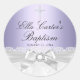 Adesivo Redondo Vinheta de renda branca roxa e batismo cruzado