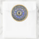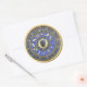 Adesivo redondo com imagem de uma roda de zodíaco azul e dourada. Veja confetti e papel de empacotamento. Veja toda a coleção de adesivos Gemstones & Medallions na seção CARDS, POSTCARDS & STICKERS.