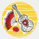 Design de Whimsical desenhado em estilo retrô, com lembranças de um feriado espanhol; uma guitarra de ferro em formas brutas, um fã de legado e uma rosa vermelha. Um design personalizável em preto, branco, vermelho e ouro amarelo para você personalizar com seu próprio texto, imagens e ideias. Uma imagem de arte digital original criada por QuirkyChic.