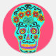 Adesivo Redondo Vinheta do crânio da flor em aqua