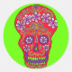 Adesivo Redondo Vinheta do crânio da flor em vermelho