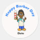 Adesivo Redondo Vinheta do dia da barba com barbeiro preto