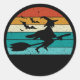 Adesivo Redondo Vinheta do Dia das Bruxas de Bruxas Voadoras Retro