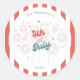 adesivo de 4 de julho. Um único adesivo patriótico personalizável, branco vermelho e azul, que adiciona a favoritos para festas ou envelopes para elevar seu churrasco patriótico de celebração do partido em 4 de julho. Gráfico moderno com uma fonte ligeiramente retrorativa sobre um fundo de listras vermelhas e brancas. Encontre suprimentos de festas mais bonitos no dia 4 de julho com esse tema na coleção Fogos de artifício do Partido em 4 de julho.