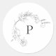 Adesivo Redondo Vinheta Floral de Monograma, preto e branco