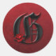 Adesivo Redondo Vinheta G Monograma Preta e Rosa vermelha