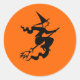 Um adesivo redondo mostrado com uma impressão de bruxa de halloween. Personalize este item ou comprar como está. com.