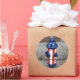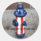 Imagem fotográfica do hidrante pintado de vermelho, branco e azul no adesivo. . "Brooklyn é América!" (com ou sem texto).
