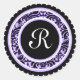 Adesivo Redondo Vinheta inicial do Monograma de Damasco Púrpura Su
