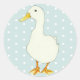 Um doce pato branco agindo legal, colocado sobre um fundo azul com pontos brancos. Um presente maravilhoso para amantes de pato ou qualquer um que ama pássaros, animais ou natureza. Também cartões correspondentes, ímã, caneca, mousepad, avental, t-shirt, poster.