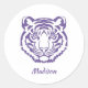 Adesivo Redondo Vinheta-mascote da Escola de Tigre Roxo