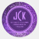 Glitter roxo elegante com monograma personalizável. Design de adesivo moderno.