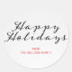 Feliz feriado em um design de roteiro divertido. Você pode editar o texto acima ou pressionar o botão "personalizar" ou "clicar para personalizar mais" para fazer mais ajustes na cor e fonte do adesivo para atender às suas necessidades. Por favor, verifique o resto da coleção para itens correspondentes para um feriado divertido e clássico.