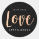 Adesivo Redondo Vinheta Negra Rosa Dourada de Casamento com Amor
