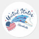 Design patriótico para patinadores de figuras americanos, dançarinos de gelo, patinadores sincronizados e patinadores de pares. Pode ser dado como presente de aniversário ou de Natal ao seu melhor amigo, membro da família, namorado ou namorada que é fã de patinar figuras nos EUA. A design também se adequa a tempo a competições de patinação artística e campeonatos. A design mostra a bandeira americana, estrelas, corações, uma bota branca de patinagem e texto que diz "Estados Unidos". Ele pode ser personalizado adicionando seu próprio nome ou texto.