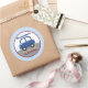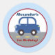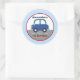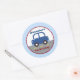 Design do tema do transporte de carro azul. Este adesivo redondo giro é personalizado com suas próprias 2 linhas de texto.