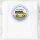 Design de ônibus escolar amarelo. Este adesivo redondo giro é personalizado com suas próprias 2 linhas de texto.