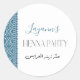 Um lindo Favor Sticker para o seu partido henna, com um impressão de tatreez palestino em azul e árabe. Personalize com o nome da noiva para seu evento especial. Argumento árabe: Hennat Zeenet al arayes Tradução: A Henna das mais belas noivas
