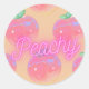 Apresentando "Peachy" - um adesivo vibrante com letras cursivas néon cor-de-rosa que soltam "peachy" contra um fundo enfeitado com pêssegos coloridos. Este adesivo adiciona uma pop de diversão frutífera a qualquer superfície, radiando positividade e um toque de doçura onde quer que vá. Perfeito por adicionar um burst de cor e chorona aos seus pertences!