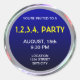 Vinheta metálica cromada para convites de festas ou outro texto, logotipo, imagem. Círculo azul e preto. Modelo com quatro campos de texto.