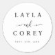 Adesivo Redondo Vinheta Preto e Branco Simples de Favor de Casamen