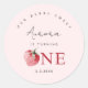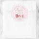 Vinheta primeiro aniversario de morango. Disponíveis os itens de Correspondência Clássico Round Sticker disponíveis.