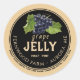Ilustração de uva aquosa a preto com borda kraft; data e ingredientes