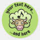 Um desenho animado de vaca. Cor de fundo personalizada. Texto personalizado.