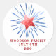 Um autocolante festivo de 4 de julho para um CHURRASCO. Apenas adicione seu nome de família. Azul branco vermelho.
