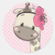 Adesivo Redondo Vinheta redonda clássica de girafa rosa-bebê perso