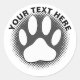 Versão branca da impressão da pata. Autocolantes personalizados. Fundo de cinza com efeito de meio-tom. O texto pode ser editado para personalização.