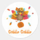 Taco clássico de peru de ação de graças Boy ou Girl Turkey. Este adesivo brilhante e colorido apresenta um pequeno peru bonito que fica em uma abóbora e Gobble (o texto é editável). Você pode mudar facilmente o tamanho e a forma do adesivo no menu personalizado.