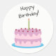 Adesivo Redondo Vinheta redonda de bolos rosa feliz de aniversário