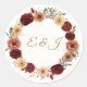 Adicione um toque encantador aos seus favores de casamento, envelopes ou presentes com este Casamento outono Rustic Round Sticker. Projetado com rosas de cor d'água, dahlias laranja queimadas, crisântemos creme, verde eucalipto e folhas de outono ouro, este adesivo elegante complementa perfeitamente o tema do seu casamento no outono. Este adesivo redondo é totalmente personalizável — ideal para adicionar suas iniciais, monograma ou texto personalizado — ou usar o penhasco floral como uma bela decoração independente. Perfeito para casamentos de outono, rústicos ou de vassoura, é perfeitamente compatível com convites, envelopes, etiquetas de presentes e outros artigos de papelaria na coleção de Casamentos outono Russos. A impressão de alta qualidade garante cores vibrantes e detalhes nítidos para um acabamento profissional.