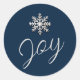 Melhore seus presentes e pacotes de férias com um toque de elegância usando este adesivo redondo refinado. O rico fundo azul marinho apresenta um floco de neve prateado escovado no topo, incorporando a magia da estação. Abaixo, a palavra "Joy" é escrita articamente em uma fonte encantadora, capturando a essência da alegria festiva e da felicidade. Estes adesivos são a adição perfeita às suas mensagens de férias, acrescentando um toque especial de calor e alegria às suas saudações. Fechar envelopes, embelezar o presente, ou adorar bolsas com este captivador, espalhando o espírito de celebração e prazer. Elevem suas apresentações de feriado com este adesivo encantador e significativo.
