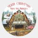 Adesivo Redondo Vinheta redonda de Natal Evergreen Barn