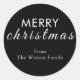 Escrito elegante e moderno nome da família "Feliz Natal" Classic Round Sticker - Preto.