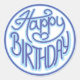Elemento de aniversário feliz redondo. Letra manual única e criativa usada para design do abstrato. Coloração azul, efeito de luz neon. Design de etiqueta perfeita para expressar suas saudações.