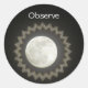 Imagem da lua vista através do círculo de ziguezague. "Observe" está escrito acima.