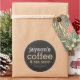 Coordena-se com a Garantia comercial "Café Cup on Black Wood Coffee Compro" até 1201AM. Perfeito para ser usado como etiqueta em contentores, sacos de compras, mercadorias e muito mais. © 1201AM CREATIVE