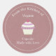 Um fundo Kraft cor-de-rosa para um adesivo Rótulo Rústico com ilustração de um cupcake em tons cor-de-rosa e textos personalizáveis. Perfeito para seus casais ou pequenas empresas!