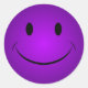 Pau púrpura com globos oculares gráficos pretos e sorriso.