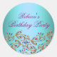 Adesivo Redondo Vinheta/selo azul de envelope floral
