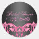 Adesivo Redondo Vinheta/selo do Chá de panela de Damasco rosa rosa