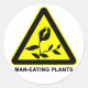 Plantas engraçadas que comem o homem, avisando o adesivo. Mostre seu senso de humor!