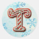 Adesivo Redondo Vinheta "T" de Natal Candy Cane, Stripes Festivas