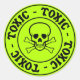 Tóxico - adesivo amarelo-esverdeado com crânio e ossos cruzados.