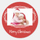 Este adesivo de Natal geométrico inspirado no decreto de arte é acentuado com luzes de Natal brilhantes e personalizado com a sua própria fotografia especial, num fundo vermelho festivo que a mantém feliz e brilhante para as férias.