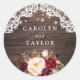 Rústica Lace De Madeira Envelope De Borgonha De Envelope. String Lights Wood Floral Marsala Envelope de Casamento Sticker