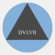 Pau Zap redondo com triângulo preto com fundo azul e romano 657 em branco.